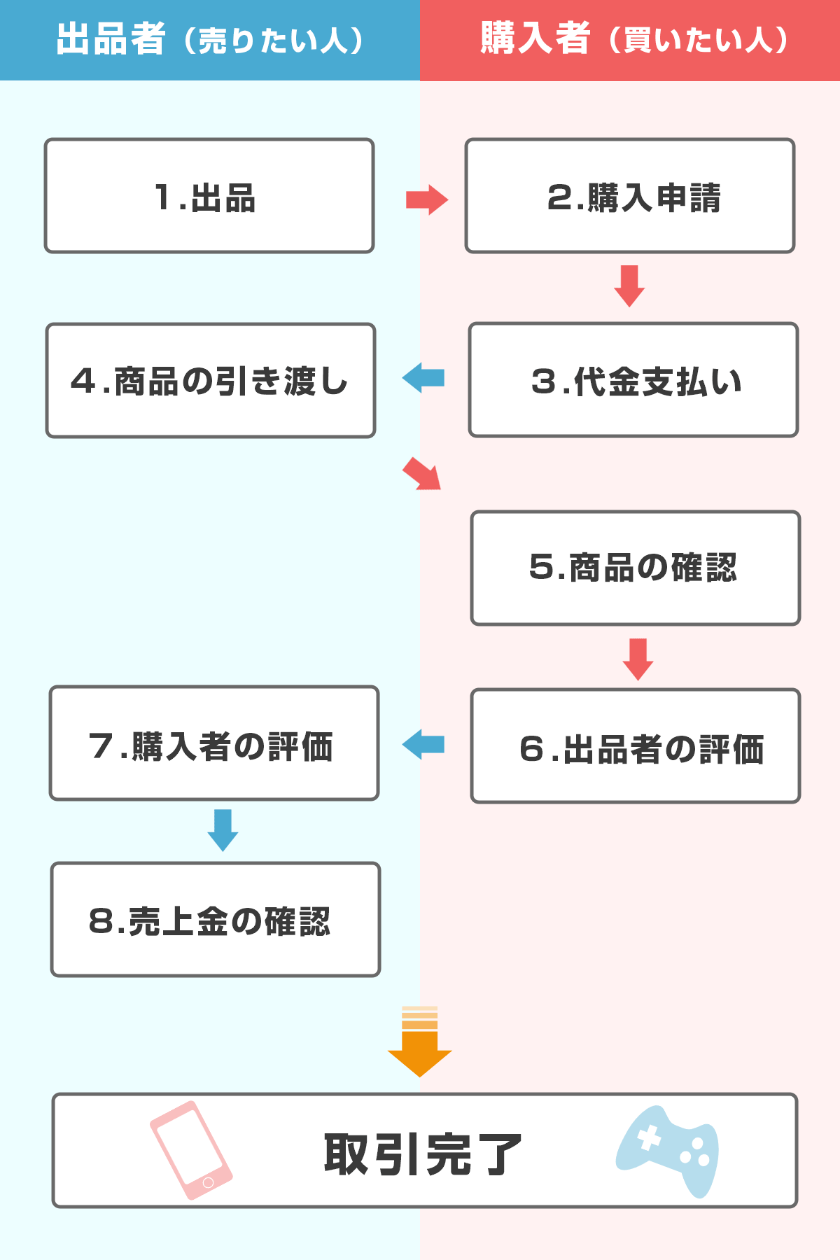 個人間で直接お金のやり取りをするのではなく、運営を通して取引が進みます。